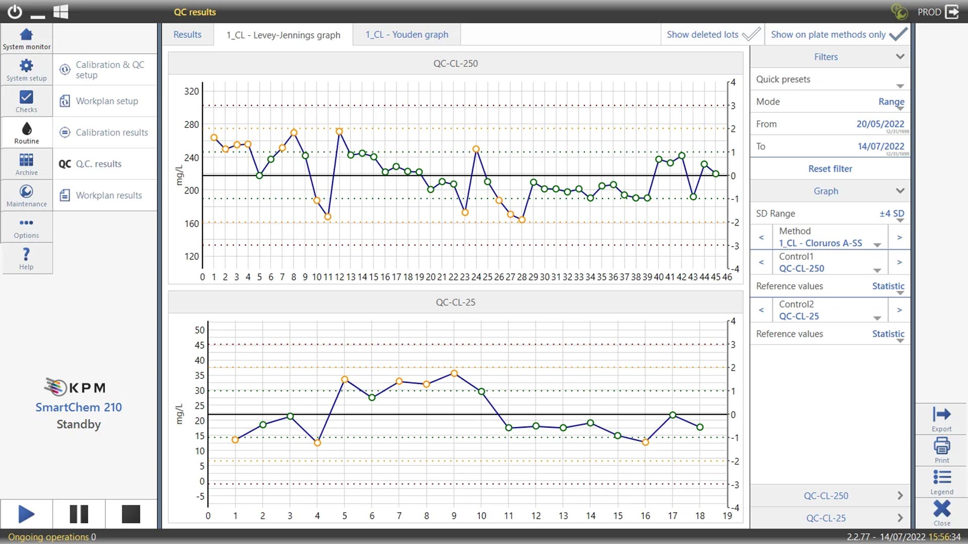 Les contrôles de qualité peuvent être évalués à l'aide de diagrammes de Levey-Jennings et les résultats de l'analyse peuvent également être validés.