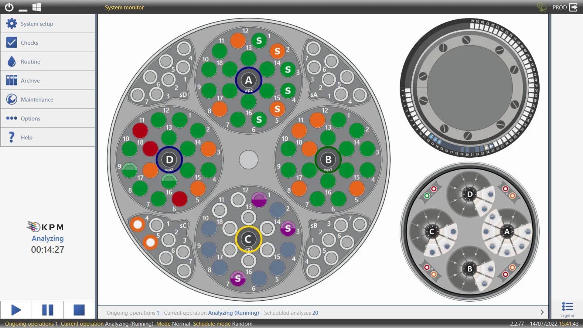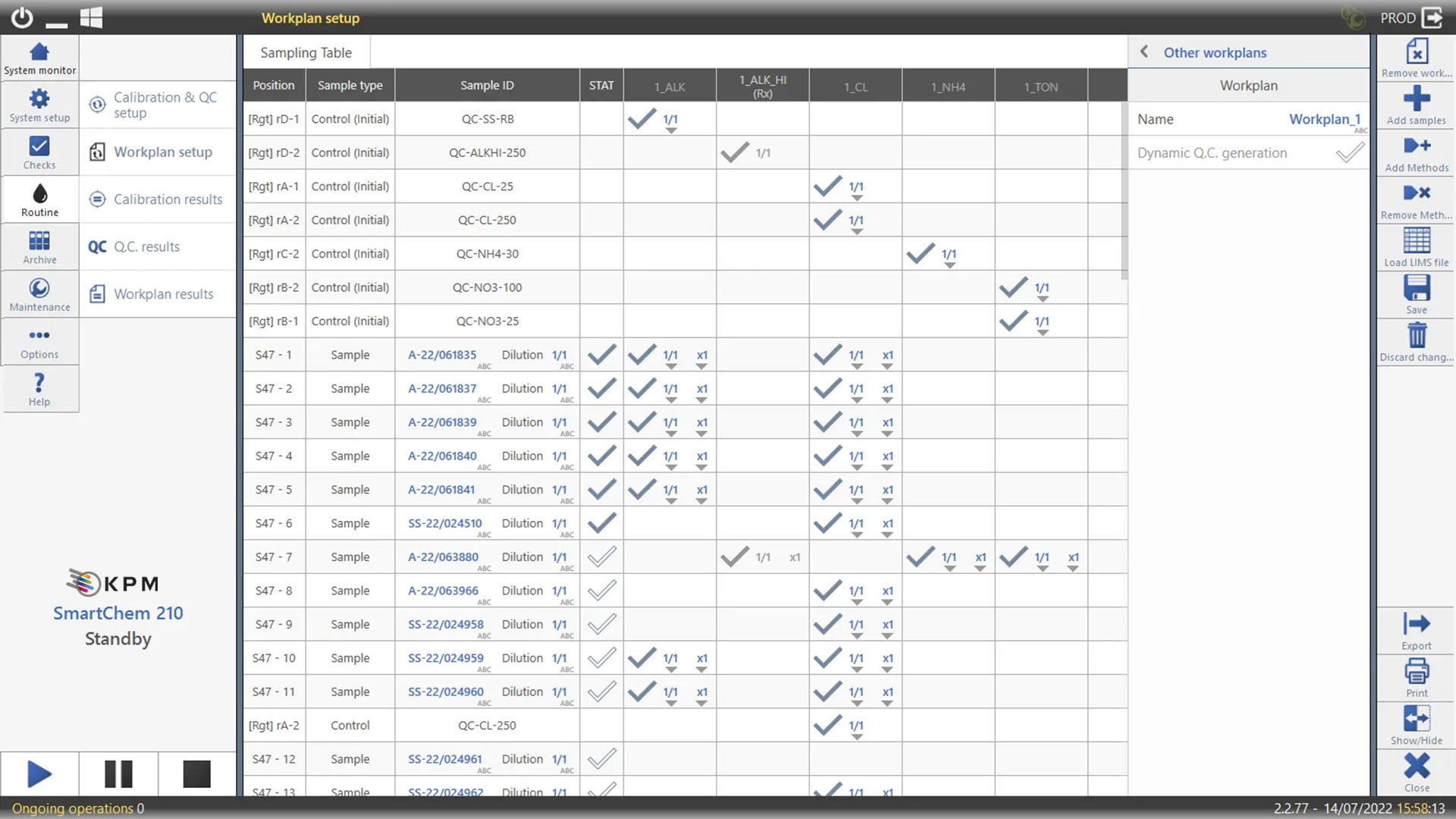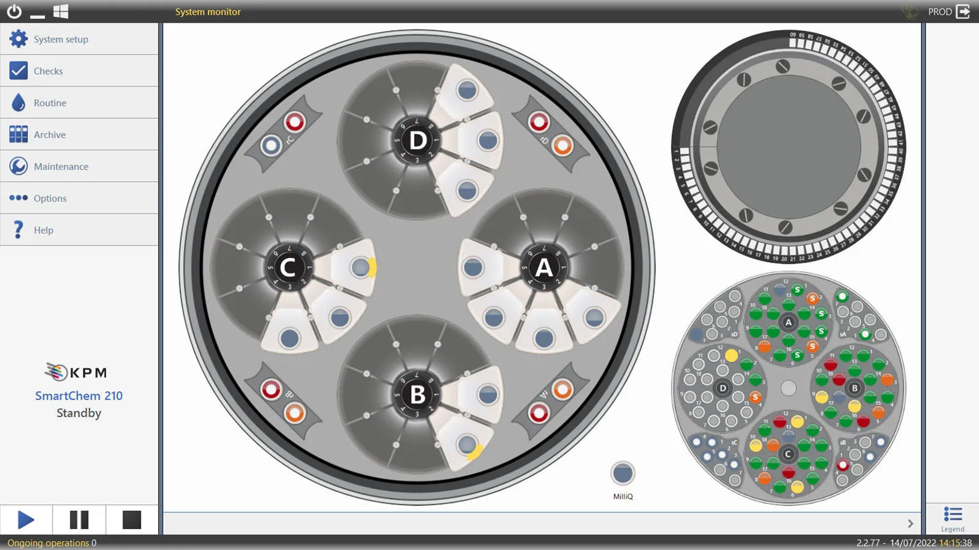 Le logiciel SmartChem® 210 simplifie les tâches de routine et permet un contrôle et un fonctionnement complets de l'analyseur à l'opérateur qui contrôle le stock de réactifs embarqué, les échantillons, les contrôles et les calibrateurs, ainsi que l'état des cuvettes dans la chambre de réaction. Les utilisateurs, en fonction des privilèges définis par l'administrateur système, peuvent avoir accès à deux écrans différents : « OperatorView » et « Advanced View ».